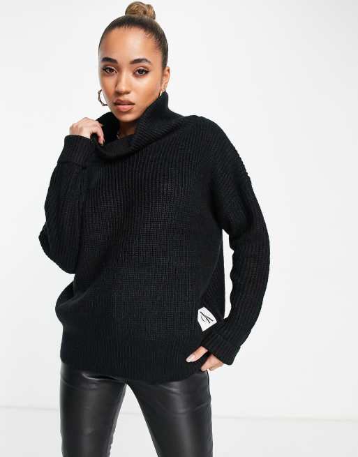 Calvin Klein Jeans Ribbed Oversized Turtleneck Knitted Sweater In Black Asos